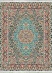فرش 1500 شانه طرح کشمیر ابریشم ریشه دستی