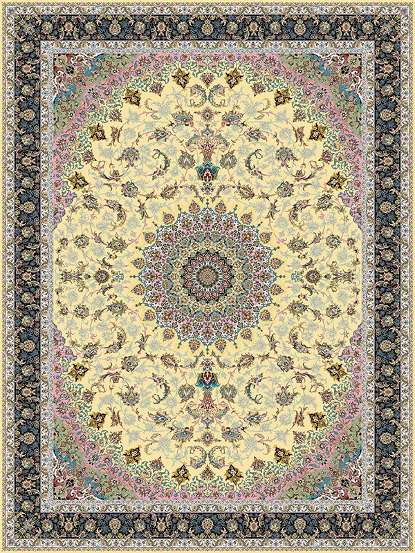 فرشهای 1200 شانه طرح طره معمولاً در رنگ لاکی حاشیه کرم تولید می شود.