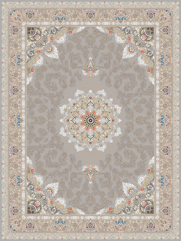 فرش 1200 شانه طرح نسترن با تراکم 3600 در رنگبندی سرمه ای، نقره ای و نسکافه ای با الیاف صد در صد اکریلیک بصورت فول سایز در شرکت فرش یلدای کویر کاشان بافت می شود.