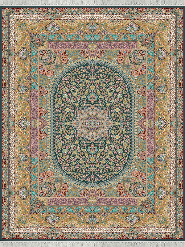 فرش 1500 شانه طرح پارمیدا ابریشم ریشه دستی