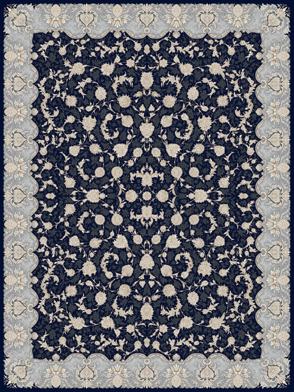 فرش آرام از مجموعه کلکسیون صوفیا یکی از طرح های پرفروش می باشد که در رنگ نقره ای تولید می شود. این فرش یکی از طرح های افشان می باشد که حالت قرینگی در سرتاسر آن مشهود است. حاشیه این فرش از طراحی ظریف برخوردار است که زیبایی فرش را دو چندان کرده.